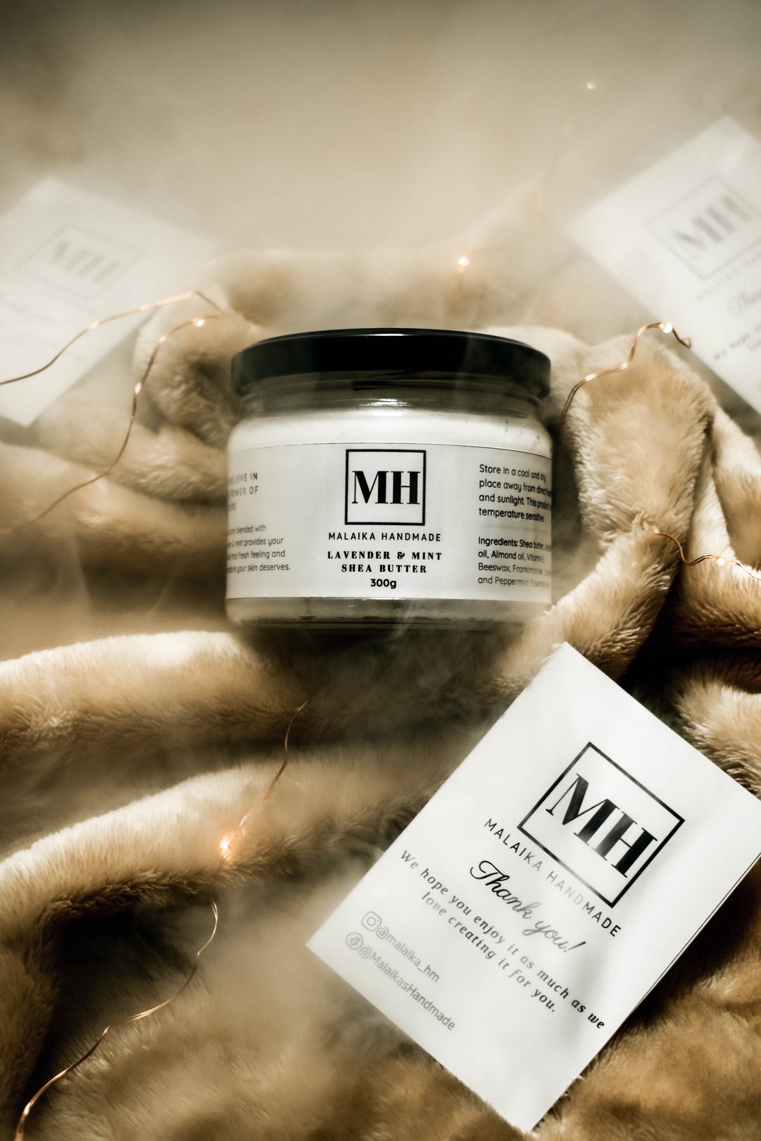 Shea butter blended with lavender and mint essential oils, provides your skin with that fresh feeling and the moisture your skin deserves.